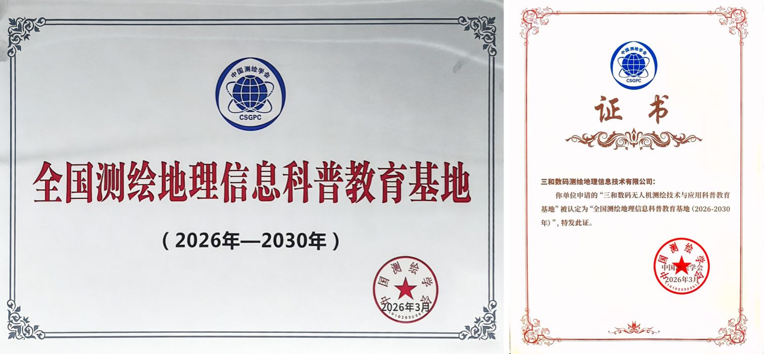 近日,2026年全国测绘学会工作会议在山东济南隆重召开。会议公布了全国测绘地理信息科普教育基地(2026-2030年)命名通知,三和数码申报的三和数码无人机测绘技术与应用科普教育基地”获评“全国测绘地理信息科普教育基地。